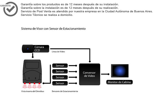 El sistema cuenta con una lente de camara infrarroja gran angular, resistente al agua y a prueba de niebla. Presenta un radar para la deteccion de la distancia y tres modos de advertencia: audio, video y longitud. El sistema se complementa con un monitor de 7” TFT-LCD que muestra la imagen clara en vivo.